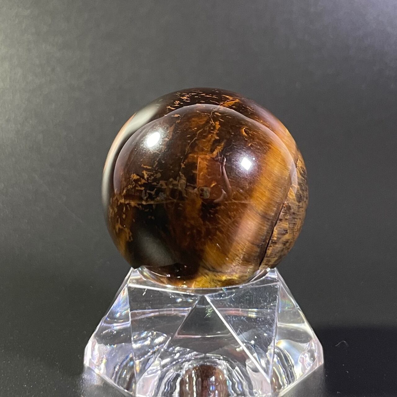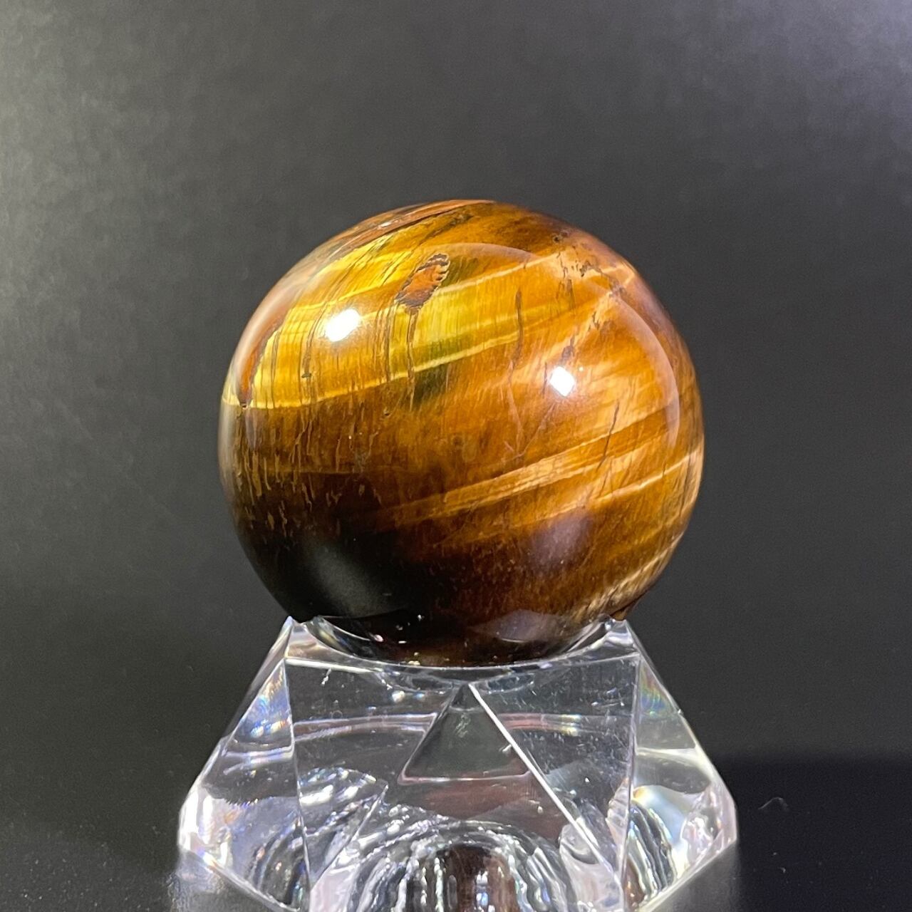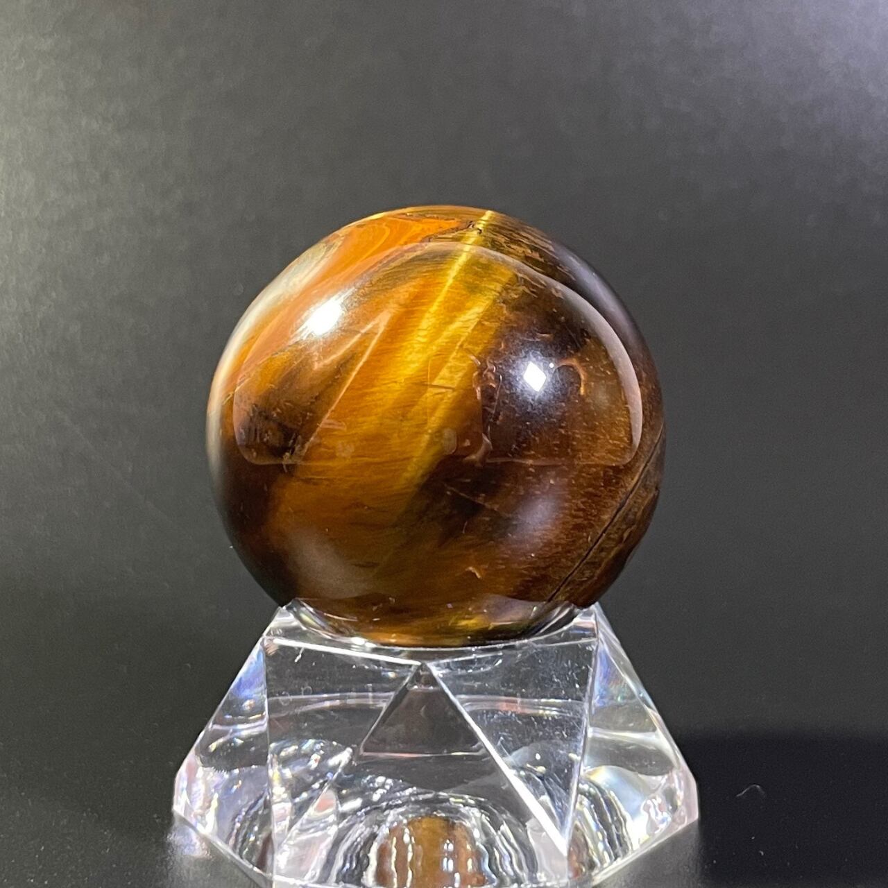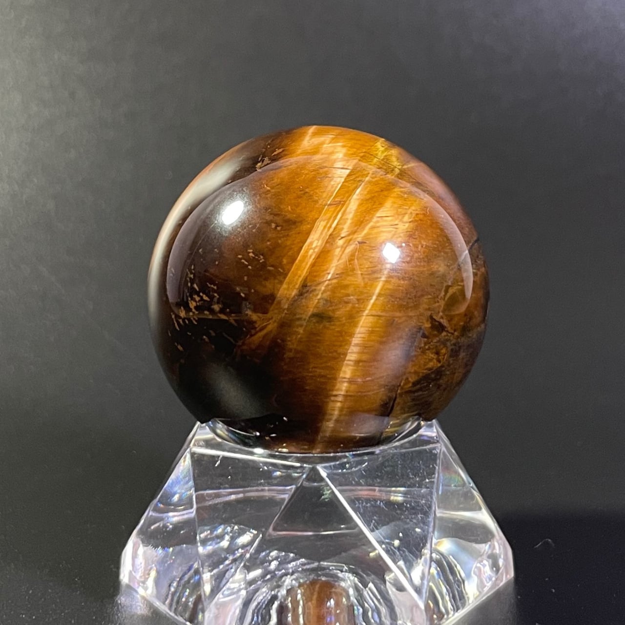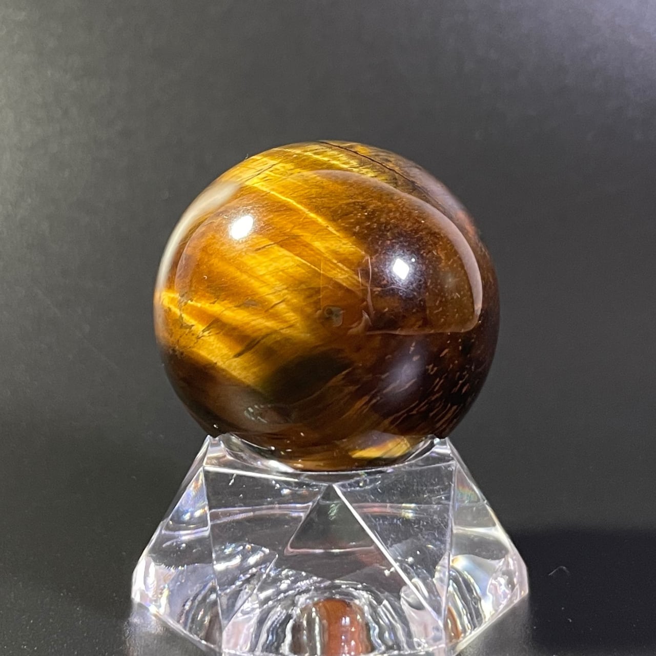 手に馴染む84gの重みと握り心地の良い約40mmサイズのタイガーアイです。