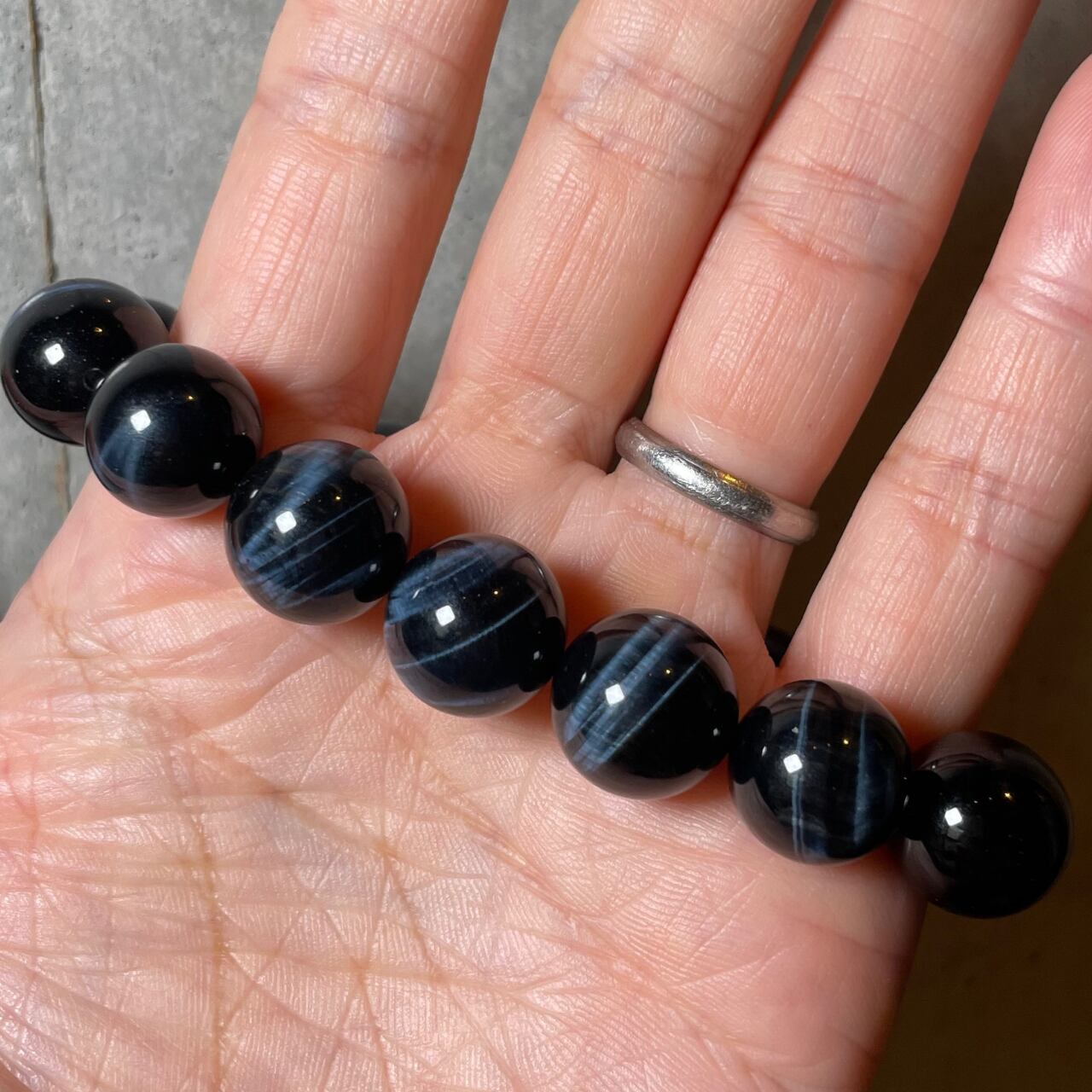 繊細な蒼きラインが美しい約14.5mm珠ブレスレット