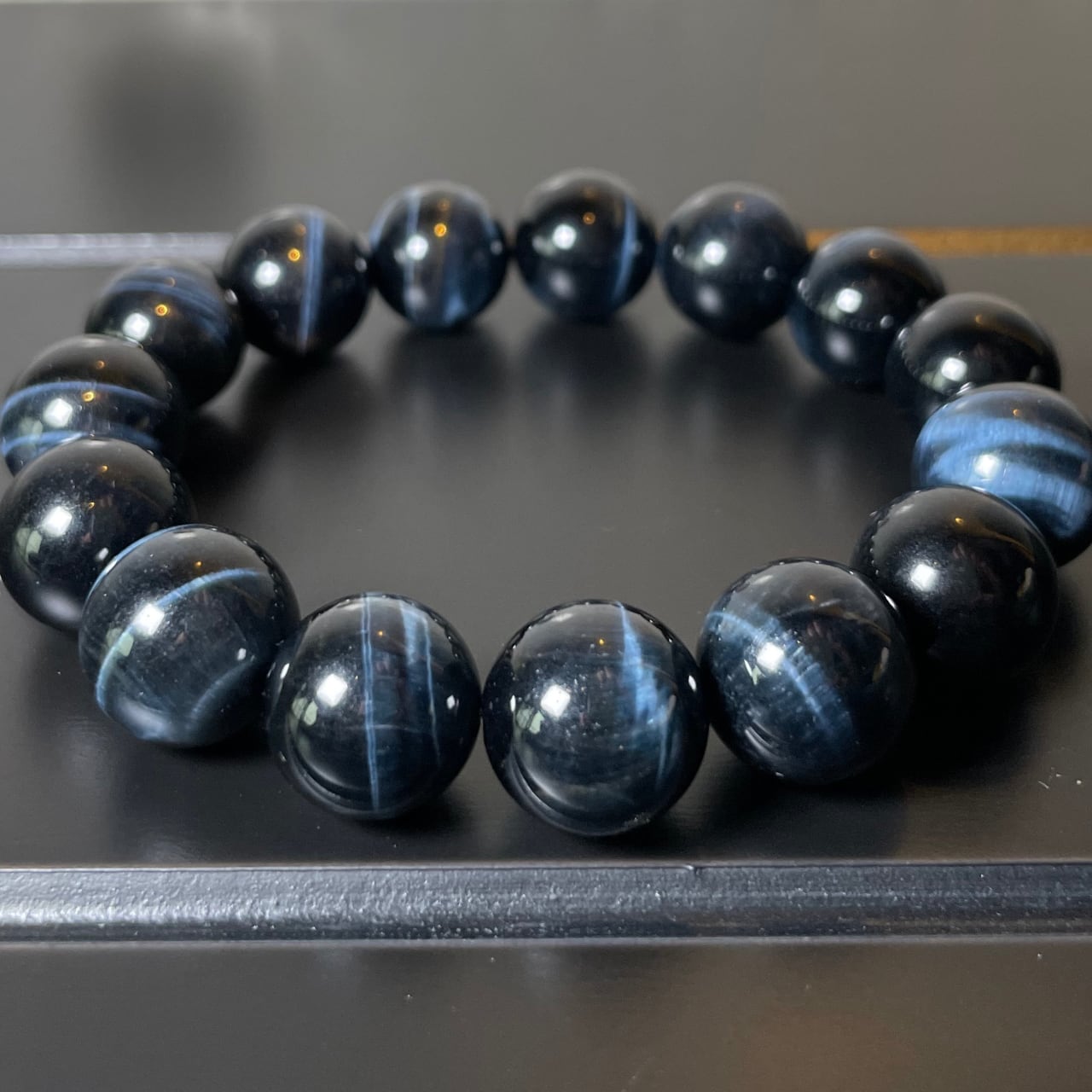 ハイクオリティーの天然ブルータイガーアイ(ホークスアイ)ブレスレットです。