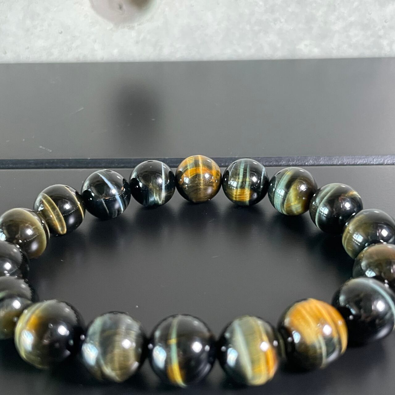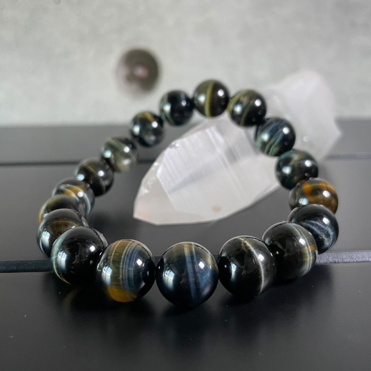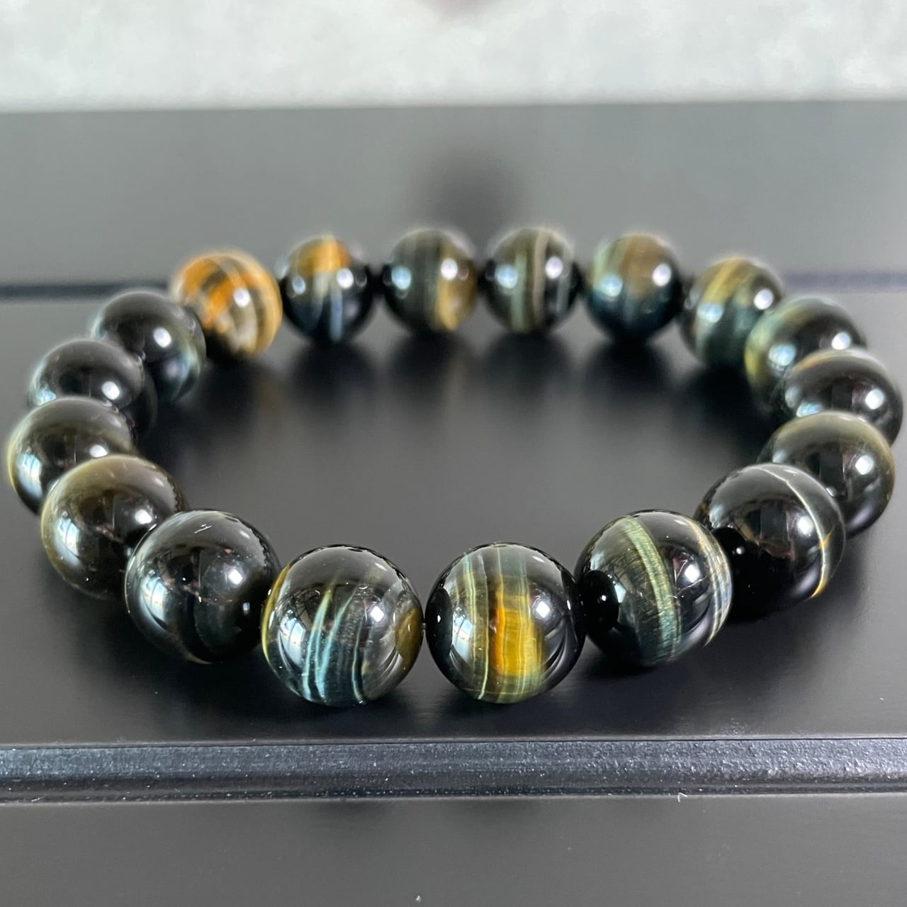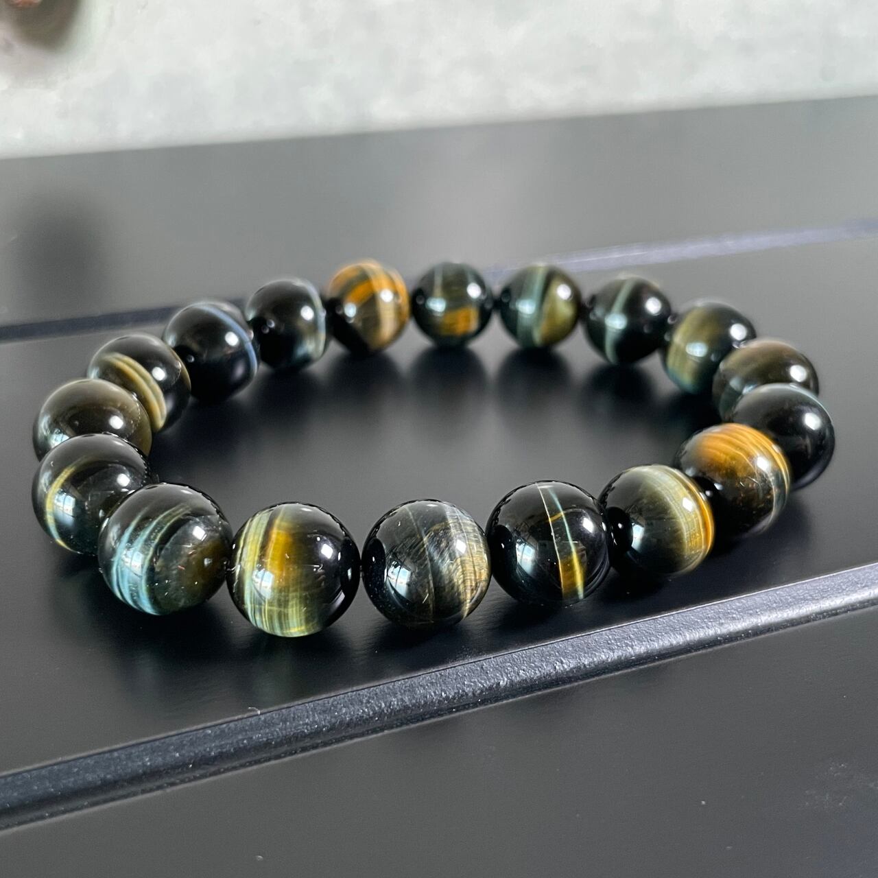 青・黄・緑色に輝く狼眼、天然ウルフズアイブレスレット