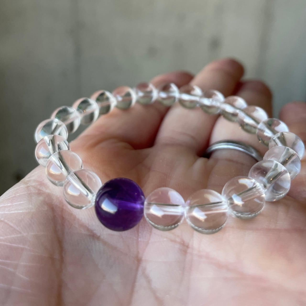 以前ご紹介した「3月誕生石アクアマリン×ヒマラヤ水晶ブレスレット」をご覧になり、とても興味を持って頂き、ご自身の2月誕生石であるアメジストバージョンにてリクエストを頂戴しました。